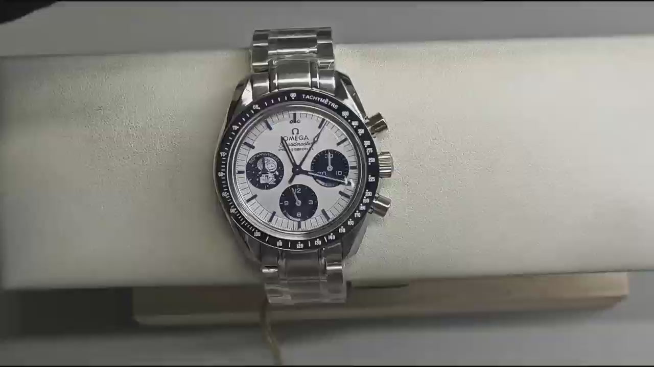 Along with black engravings on the caseback in tribute to Apollo 13 and OMEGA's Silver Snoopy Award, there is also a blue ceramic [ZrO2] bezel ring with a white enamel tachymeter scale. The non-limited watch is driven by the OMEGA Co-Axial Master Chronometer Calibre 3861, and comes in a special presentation box.